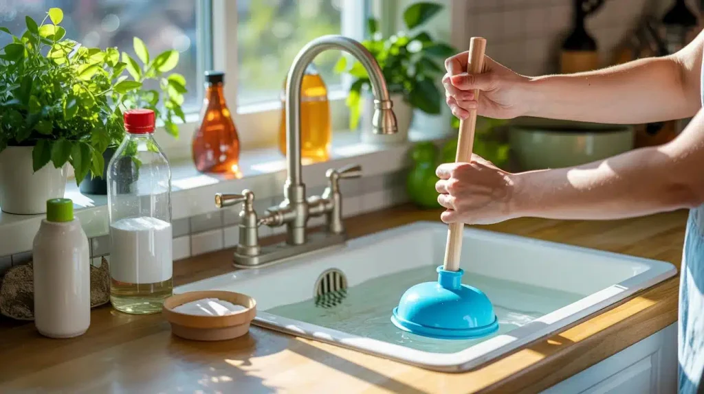 Um Ihr Waschbecken auf umweltfreundliche Weise zu reinigen, haben Sie mehrere Möglichkeiten. Die erste besteht darin, Backpulver und Essig zu verwenden, zwei Komponenten, die in Kombination eine natürliche chemische Reaktion auslösen, die Fettablagerungen und Speisereste auflösen kann. **Beginnen Sie damit, ein halbes Glas Backpulver in den Abfluss zu schütten**. Fügen Sie dann ein Glas weißen Essig hinzu. Lassen Sie die Mischung etwa eine Stunde lang einwirken und spülen Sie sie dann gründlich mit heißem Wasser aus. Mit dieser einfachen Methode lassen sich Verstopfungen oft beseitigen, ohne die Rohre zu beschädigen.